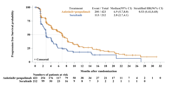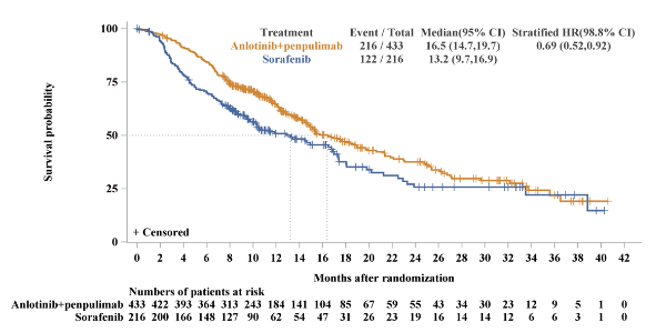 [4]Jian Z, et al. Primary results from the phase III ALTN-AK105-III-02 study: Anlotinib plus penpulimab versus sorafenib as first-line (1L) therapy for advanced hepatocellular carcinoma (aHCC). 2024 ESMO, LBA 40.