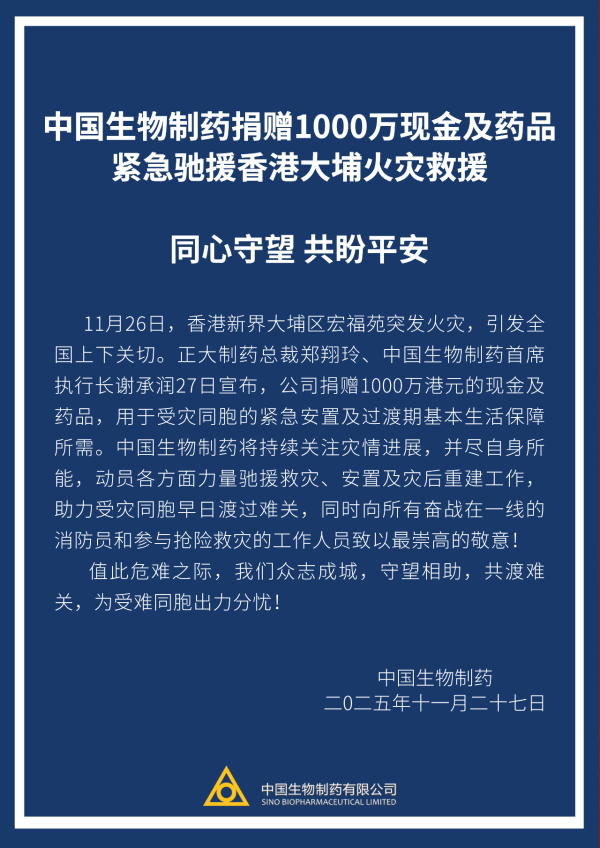 大发88制药捐赠1000万现金及药品 紧急驰援香港大埔火灾救援