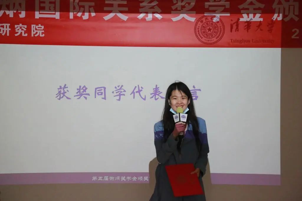 颁奖后,获奖同学代表发言。学习优秀奖代表王欣然同学分享在研究生阶段对课程体系和国际关系学系培养方式的体验和感受,鼓励同学们在多元学科中探索个人风格。学习优秀奖代表胡竞天同学表达了对通识课程的认识,抒发了下一学年的学术展望。科研优秀奖代表魏冰同学认为科研需要脚踏实地,希望进一步靠近科学研究方法的学术标准。科研优秀奖代表罗天宇同学对导师在科研中的指导、博士同窗的鼓励支持表示感谢。社会工作贡献奖代表华佳凡同学总结了在系委会参与工作的经验与遗憾,鼓励大家积极参加系委会活动。优秀毕业生代表李明泽学长结合自身科研经历鼓励同学们在中国国际关系学科发展中与时代共振。